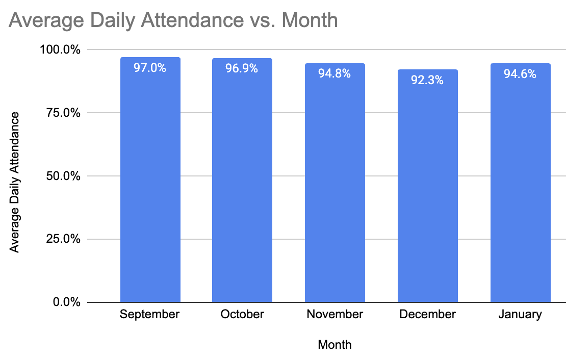 Our Attendance Team meets regularly to review student attendance at HMS. One of our goals this year is to share attendance data more regularly with our school community. The graph included here shares attendance rates for the first five months of this school year. Attending school regularly is the number one predictor of student success and academic achievement. |