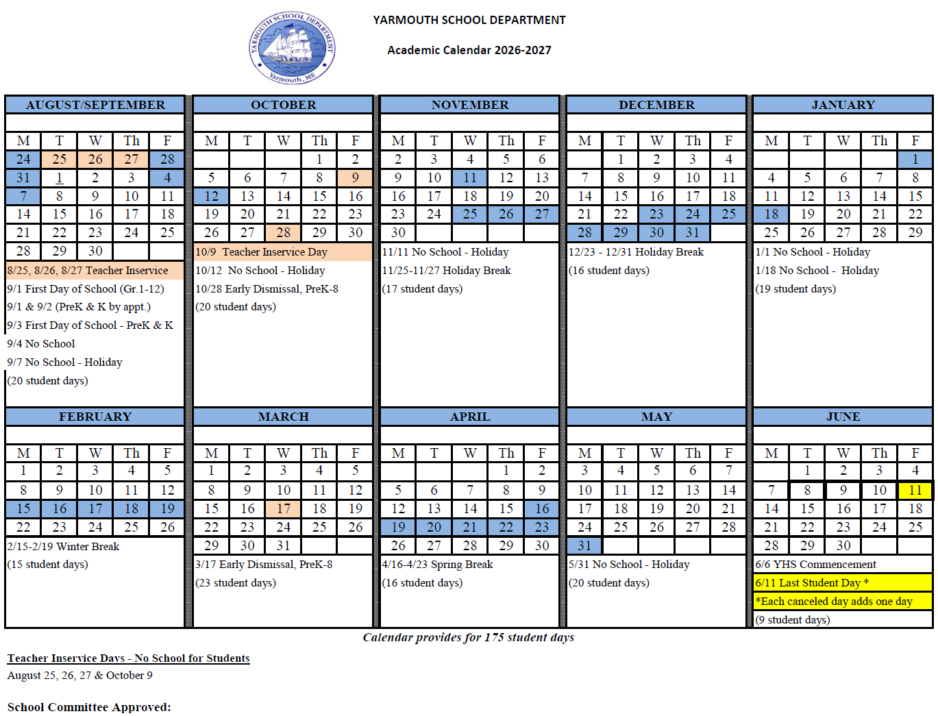 Each year, the School Committee adopts the academic calendar for the coming year. This calendar must align with that of 6 other school districts whose high school students may attend Portland Arts & Technology High School for career and technical education programming. The School Committee reviewed the proposed calendar in February and will make a final decision on March 12.