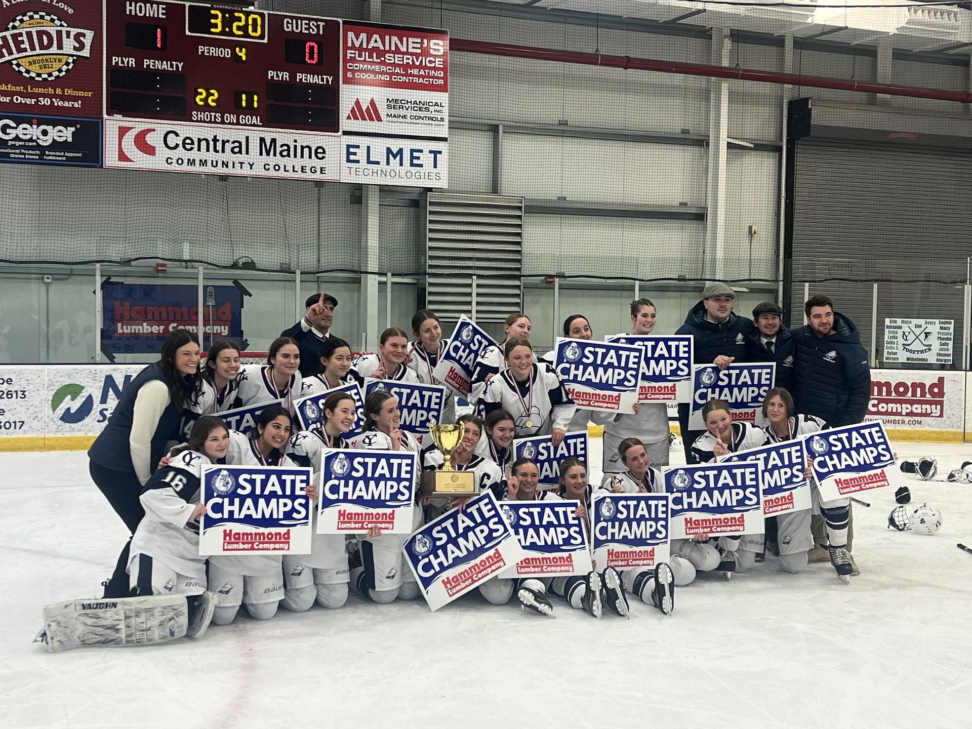 The Girls' Ice Hockey team kicked off the run with their first ever state championship in a 1-0 overtime thriller over three-time defending champion Cheverus. Freshman Avery Guyer scored the winning goal after goalie Lydia Costa shut out the top-ranked Stags for more than three periods to keep the Clippers within striking distance. |