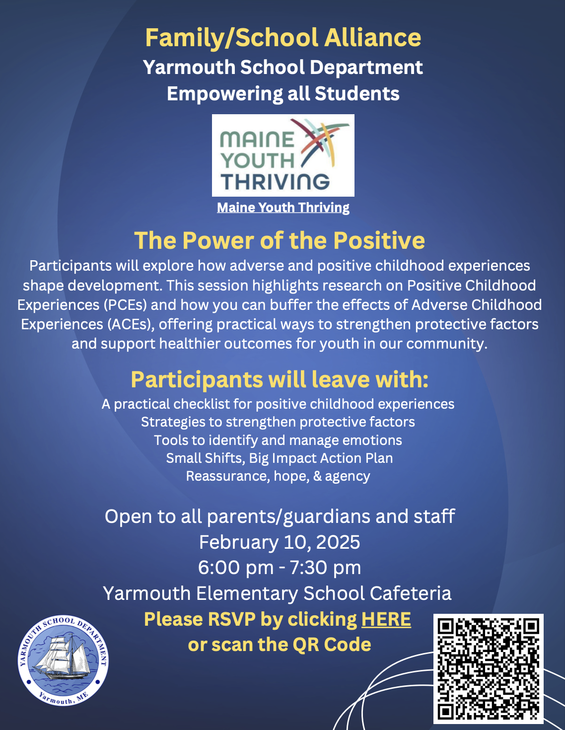 If you plan to attend this event in the YES cafeteria please RSVP at this link. |