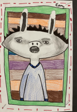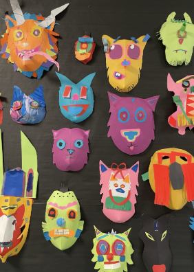 4th and 5th grade artists have spent the first half of the year exploring drawing and sculpture. Artists used a drawing activity by artist Lynda Barry to create a collection of unique characters and then created a realistic portrait of their favorite one using shading techniques. We are now completing paper masks inspired by the vibrant papercraft work of artist Michael Velliquette.