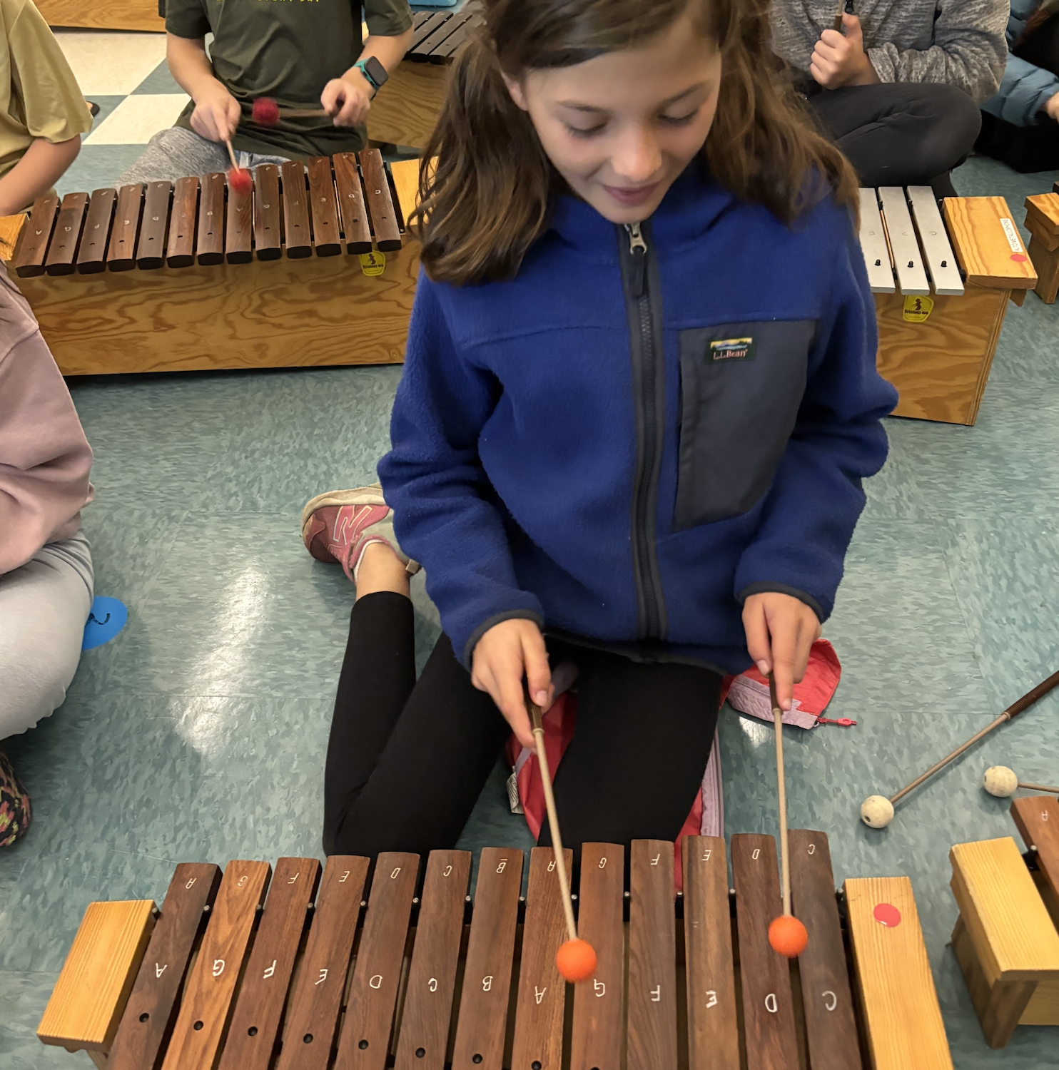 Our fourth and fifth graders are building on these same skills with the goal of becoming more independent musicians. They are learning how to practice with purpose, break down tricky tasks into manageable chunks, and reflect on their progress. Students are also exploring how music connects people, places, and ideas across the globe—deepening their understanding not only of the role music plays in their own lives, but also how it shapes culture and community.